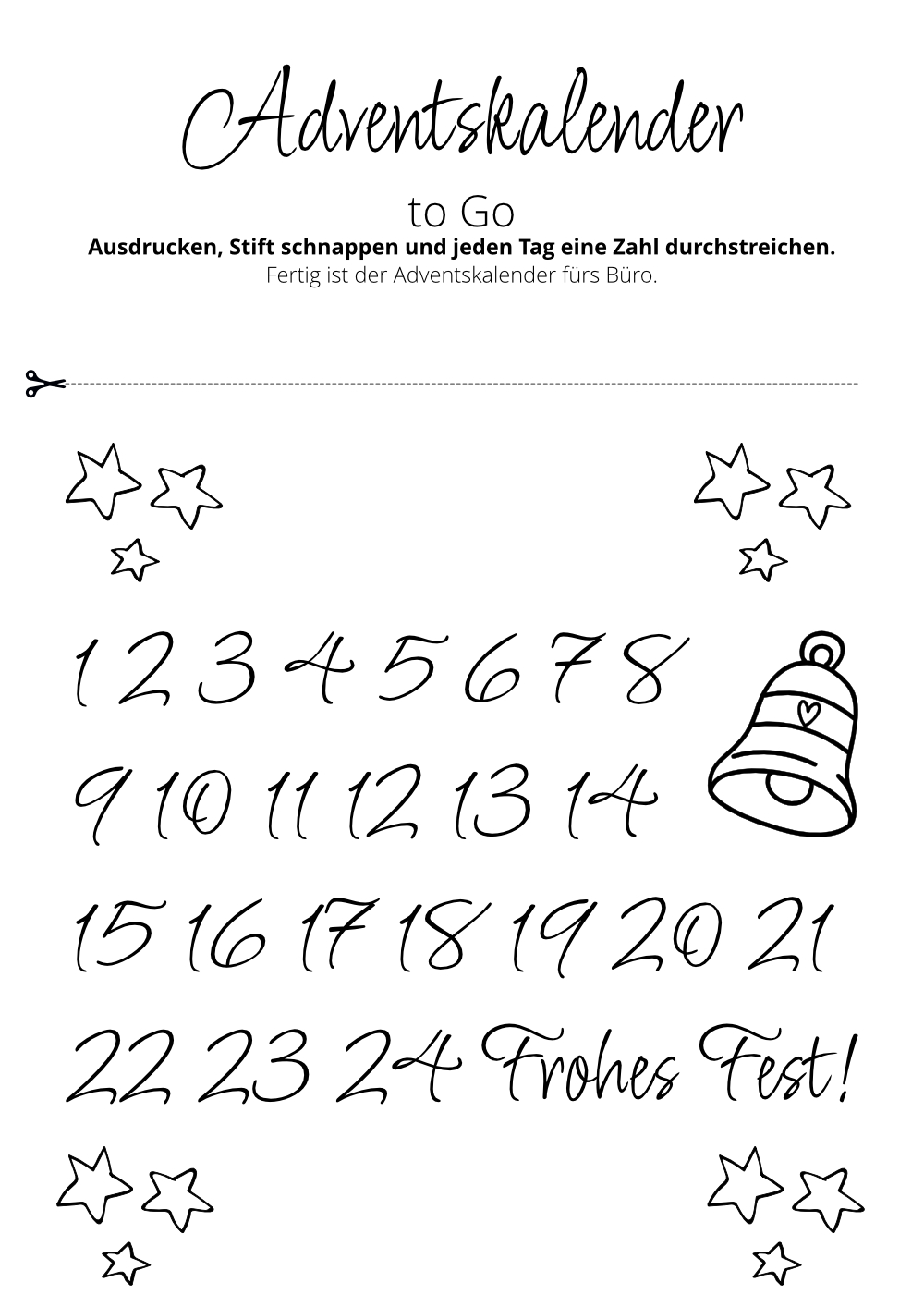 Drucken, an die Wand hängen und täglich ein Feld durchstreichen.