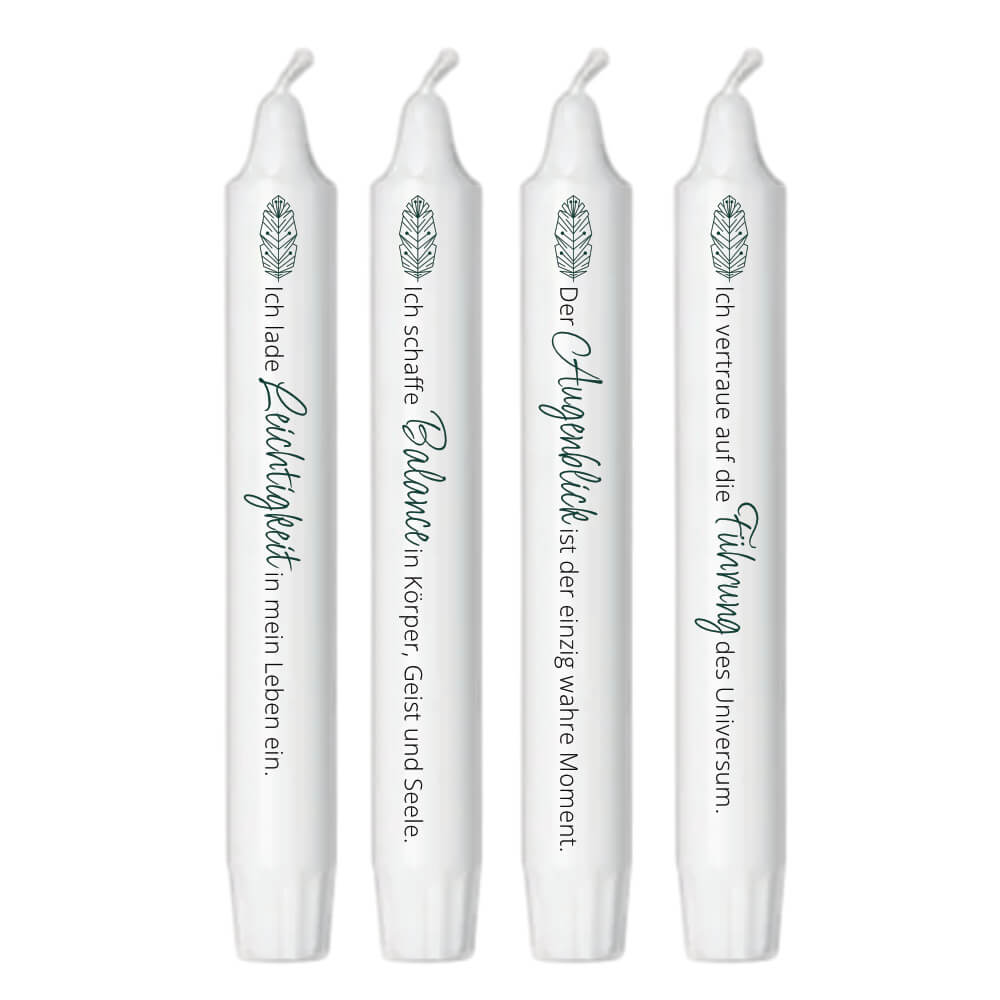 - Kerze mit Affirmationsspruch – wähle deinen Lieblingsspruch passend zu den Karten (mehrere Varianten stehen zur Auswahl).
