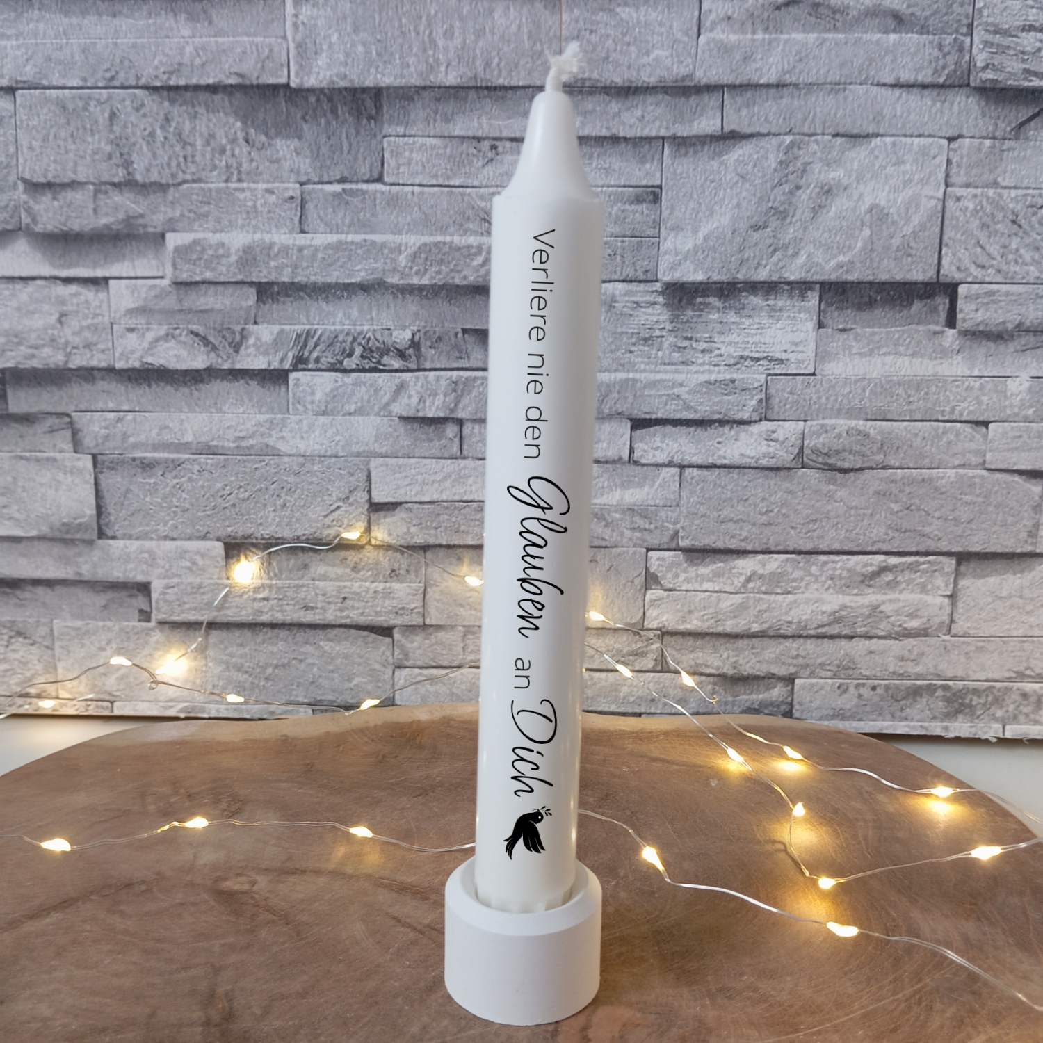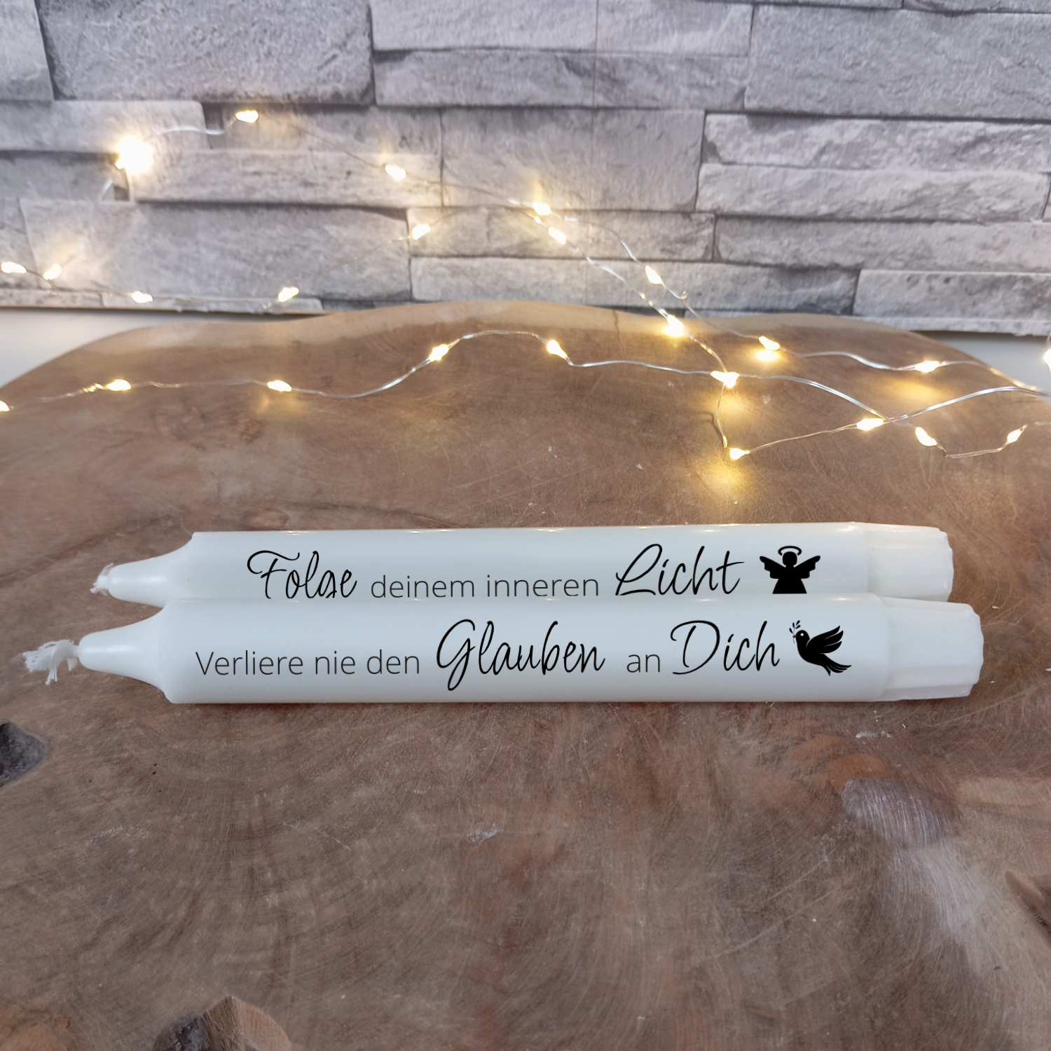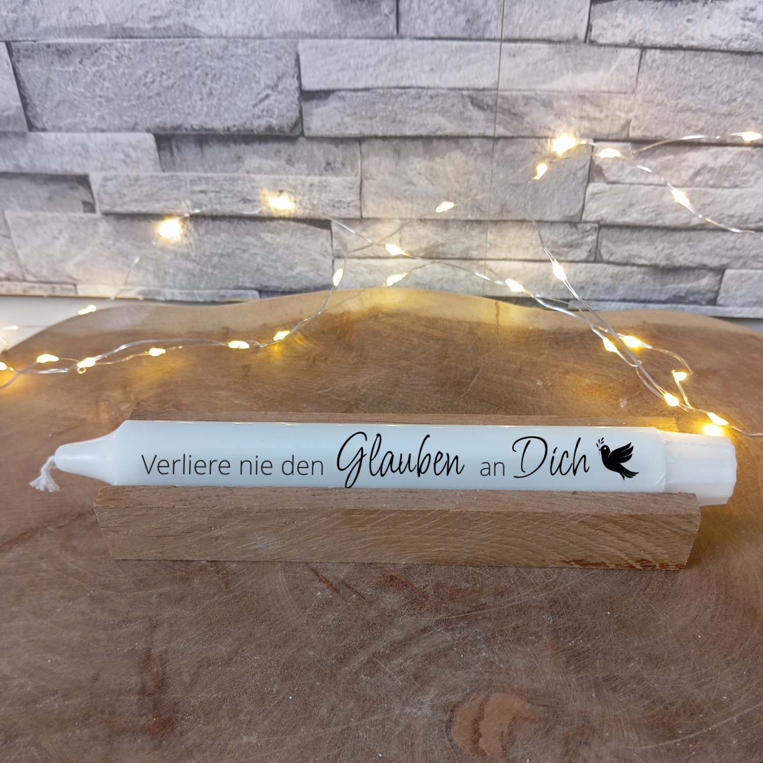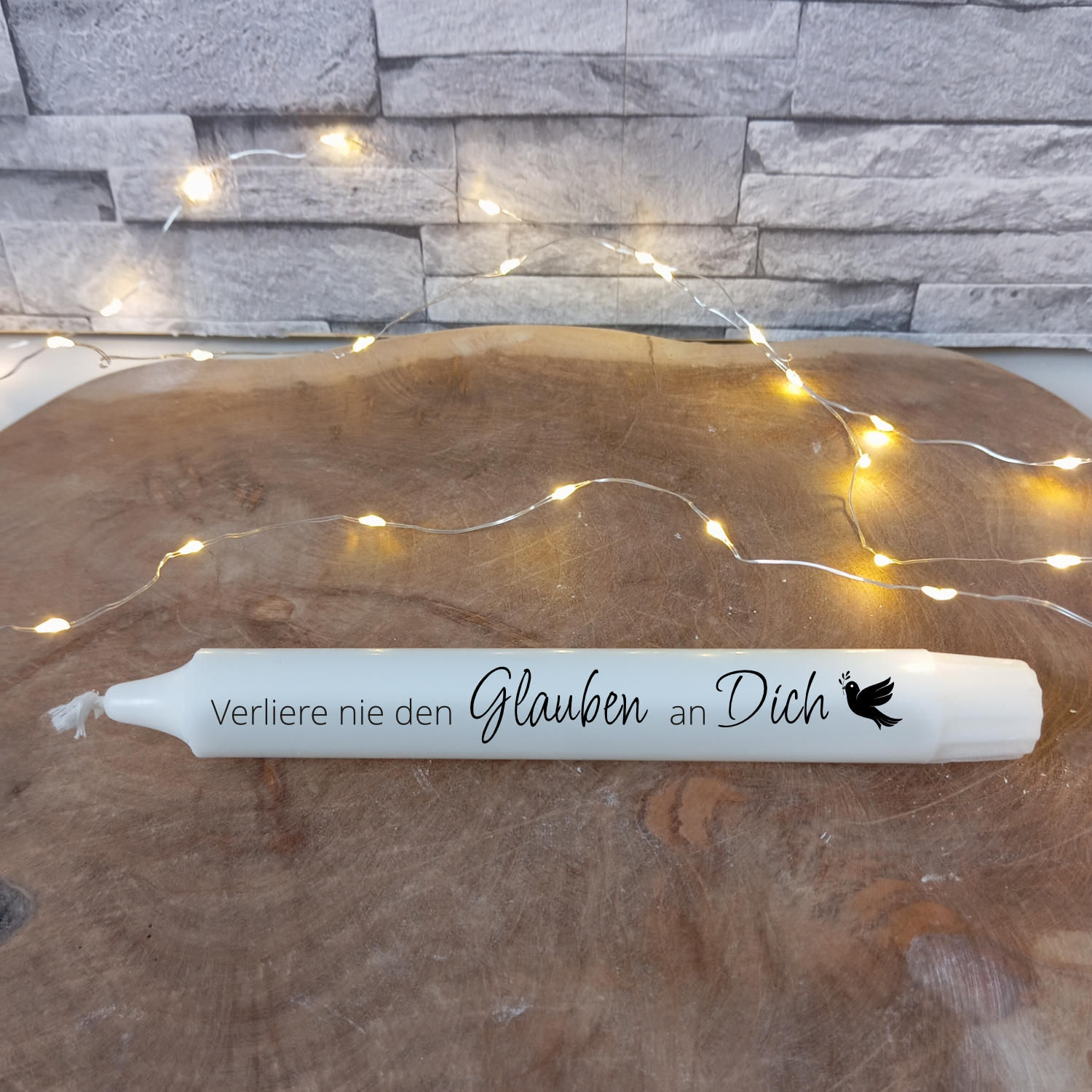 Jede Kerze wird mit einem schönen Spruch versehen, einschließlich eines ausgewählten Symbols. Dies macht jede Kerze zu einem ganz besonderen Erinnerungsstück, das den Anlass für immer festhält.
