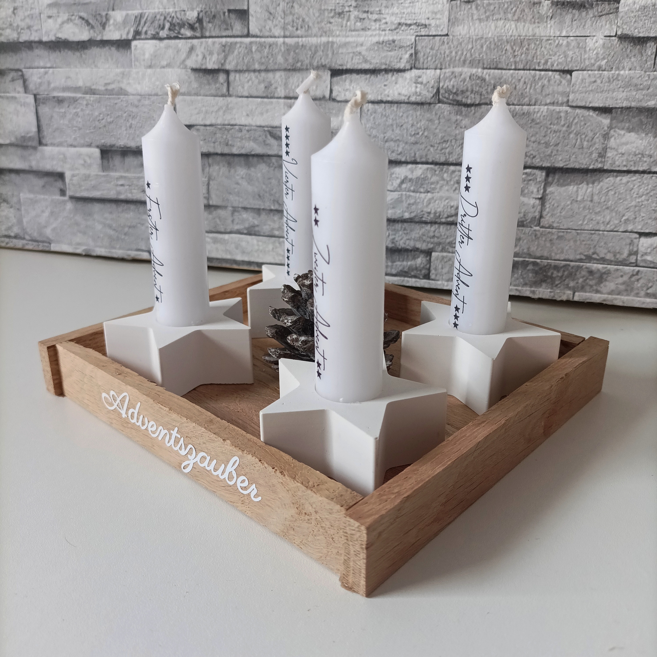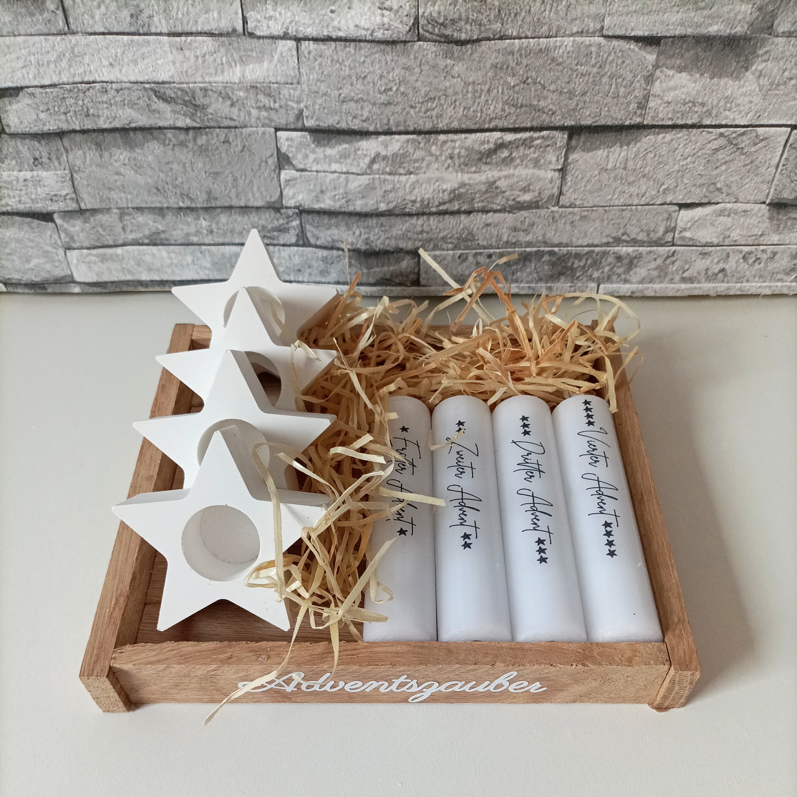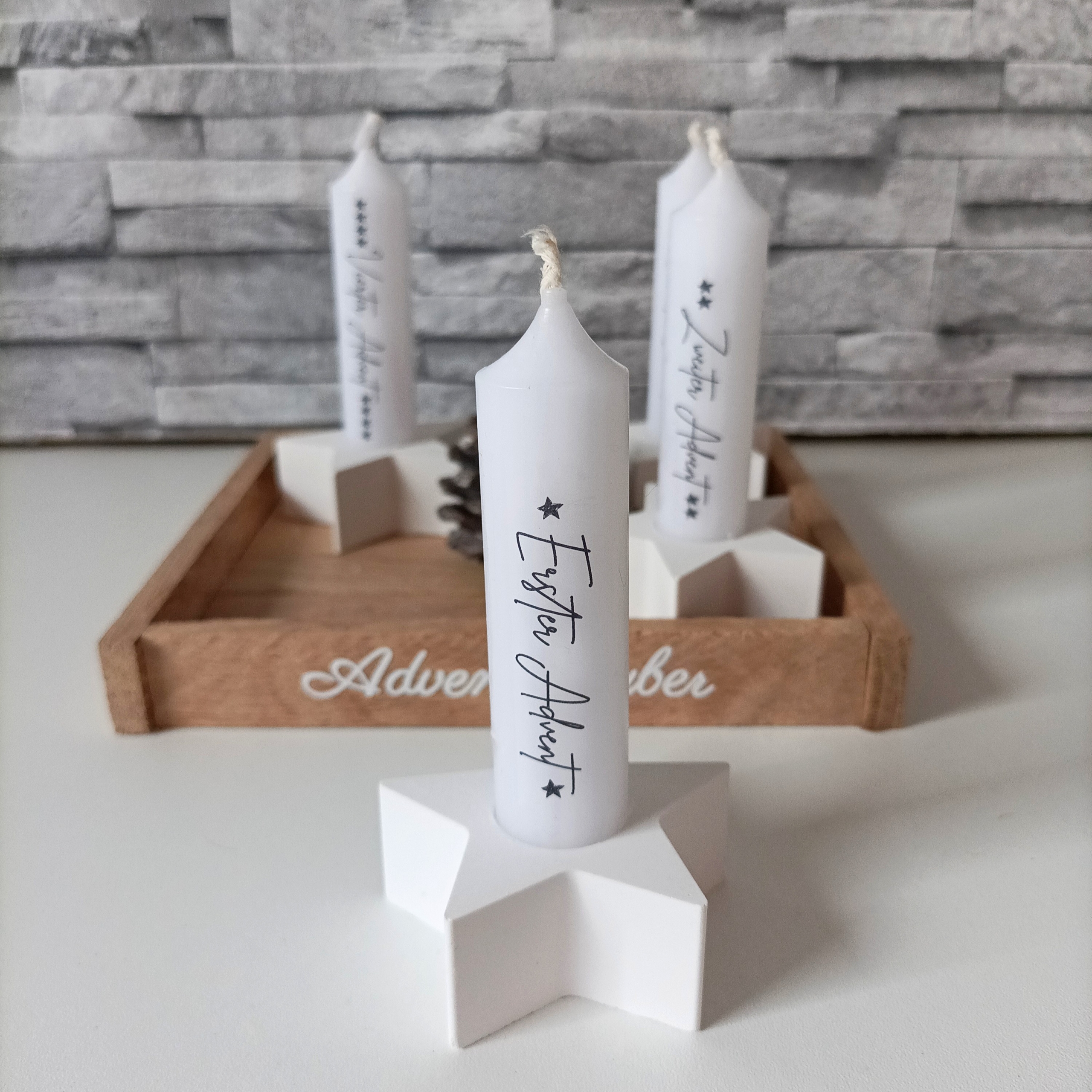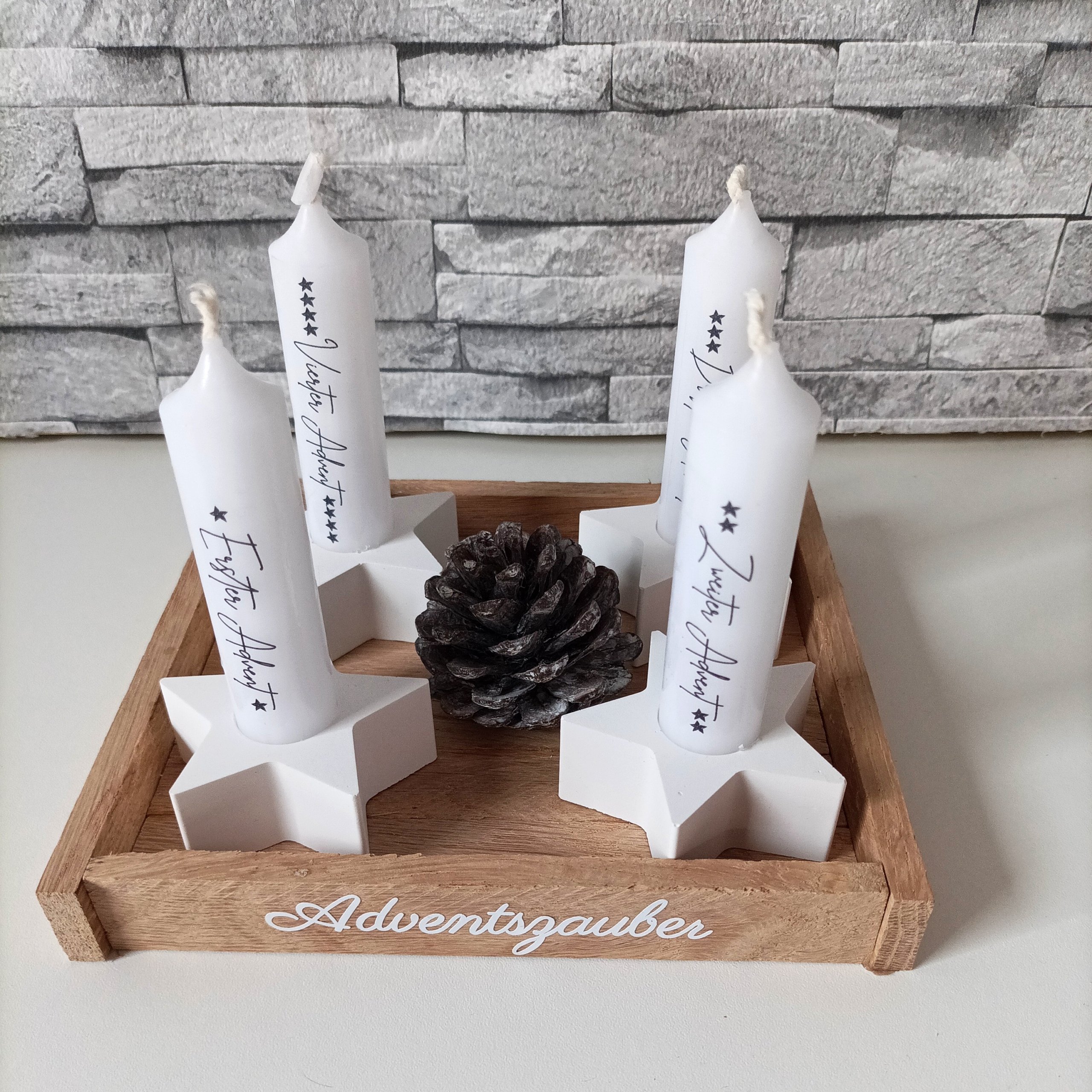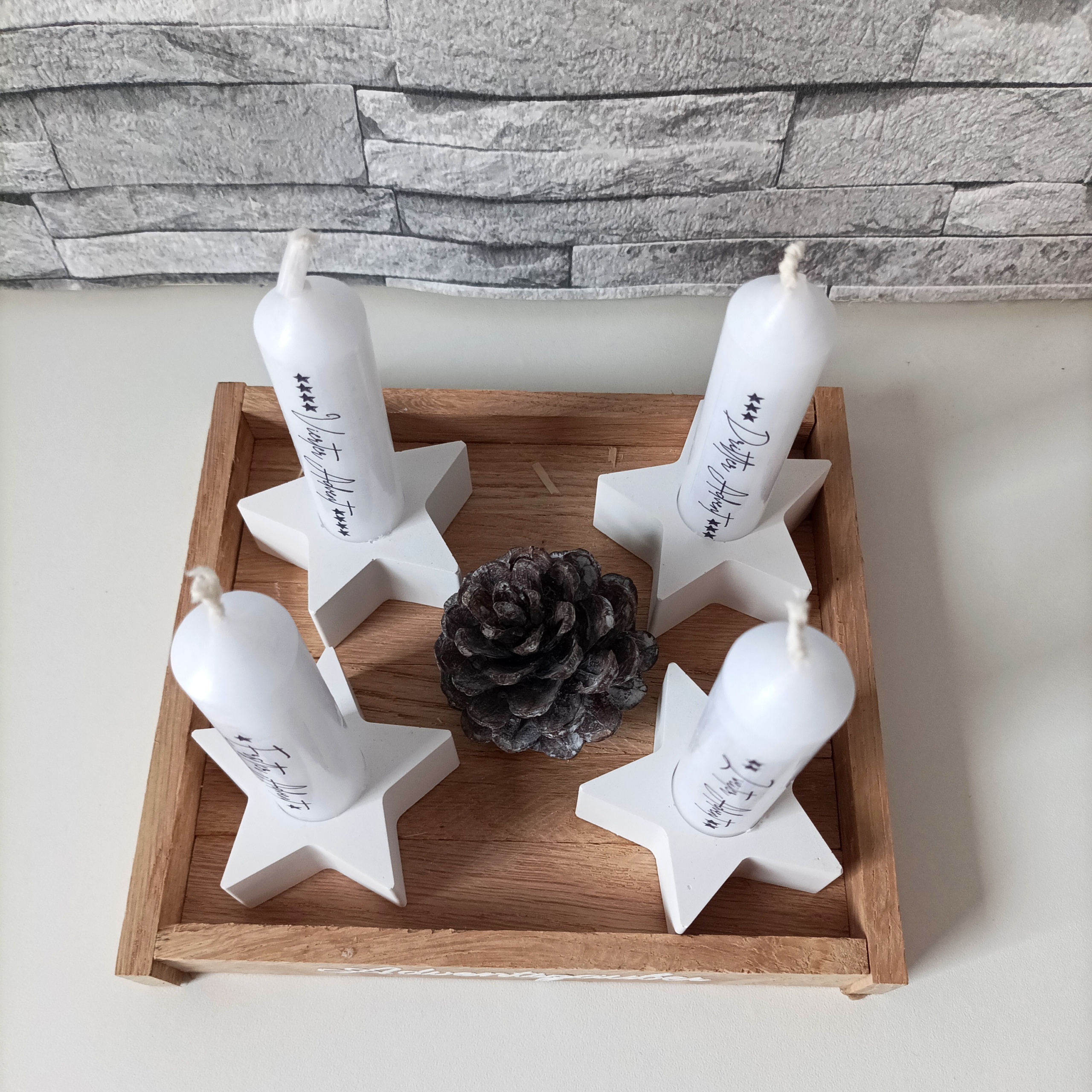 Erwecke die Magie der Adventszeit mit meinem Adventskranz klein. Die vier Kerzen mit den Kerzenhaltern in Sternenform aus hochwertigem Raysin sind ein ganz besonderer Hingucker und machen das Warten auf den Weihnachtsmann zu einem unvergesslichen Erlebnis. Mit diesem zauberhaften Adventskranz wird das Dekorieren und Gestalten zu einem kreativen Vergnügen, denn den Möglichkeiten sind keine Grenzen gesetzt.