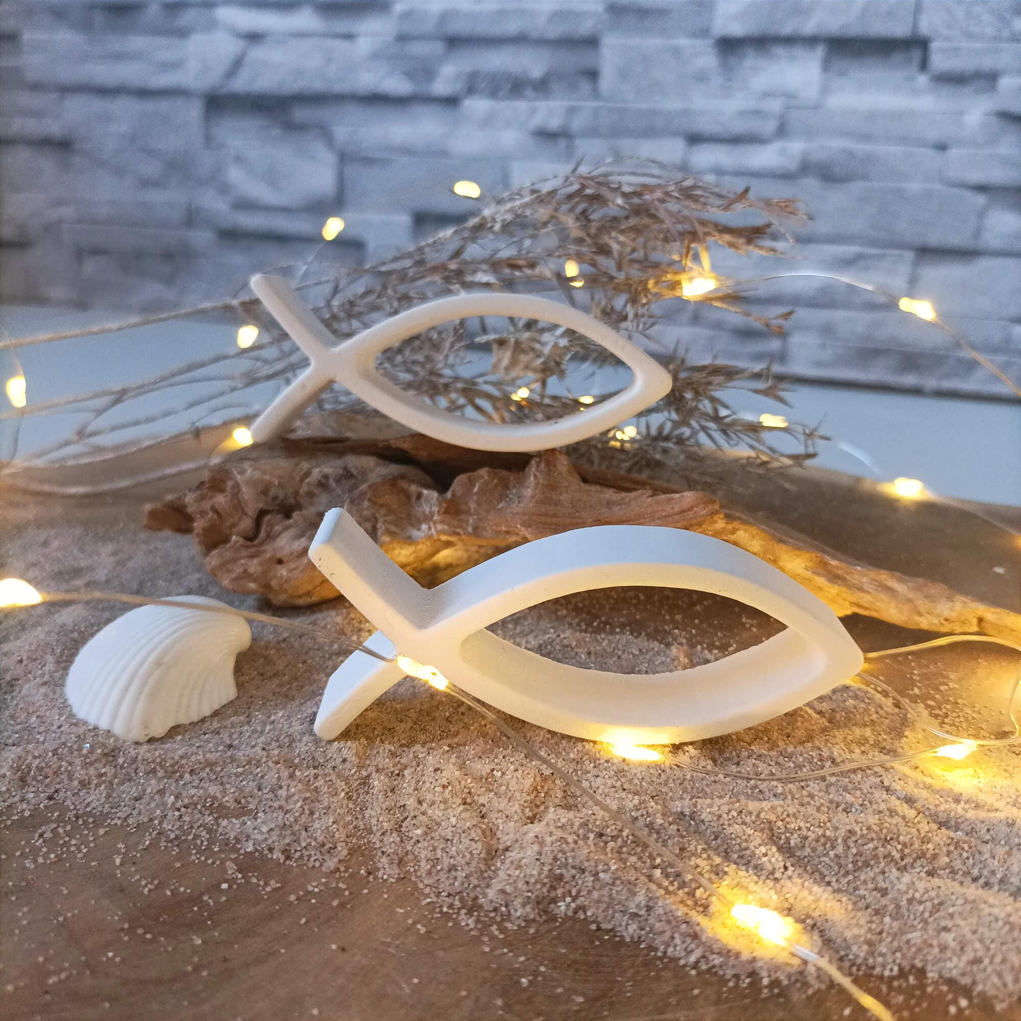 Die Fische sind in liebevoller Handarbeit aus Raysin gefertigt und strahlen eine einzigartige Schönheit aus. Jeder Fisch hat eine Größe von ca. 7,5 x 2,7 x 1,5 cm (Breite x Höhe x Tiefe) und ist somit die perfekte Größe für deine festliche Tischdeko.