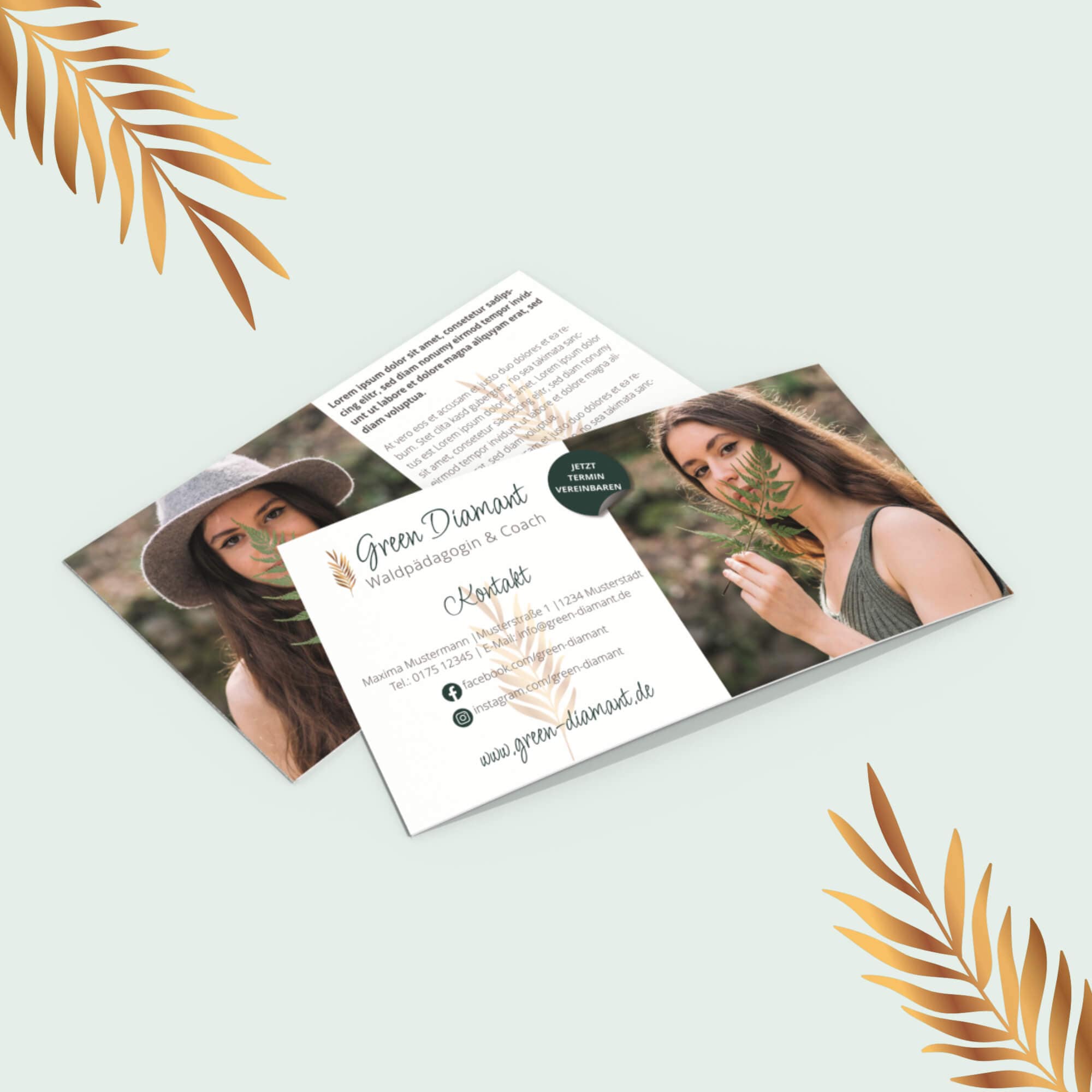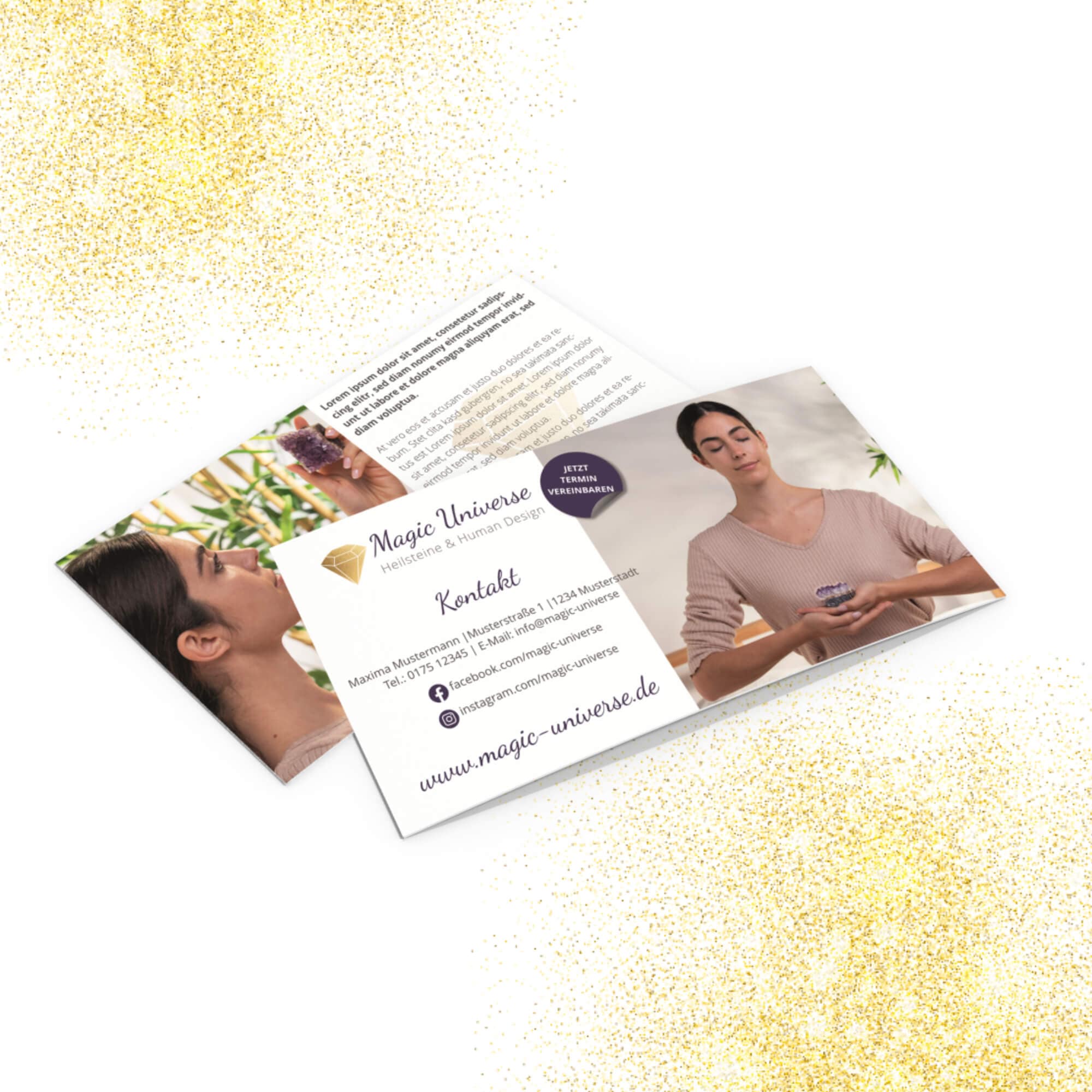 - Passende Visitenkarten und Flyer: Ergänze dein Branding mit stilvollen Visitenkarten und Flyern, die dein professionelles Auftreten unterstreichen.