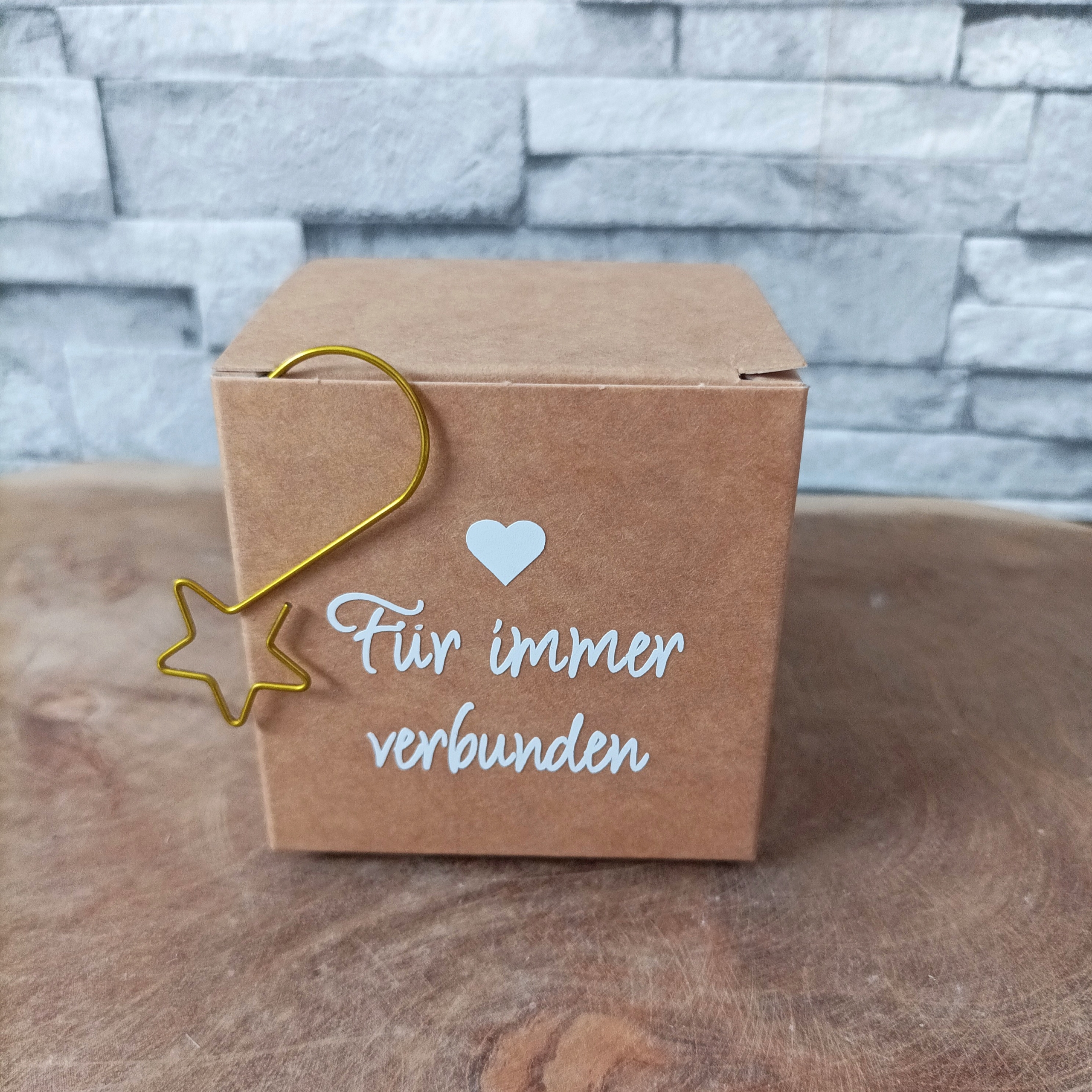 Meine personalisierten Weihnachtskugeln werden sicher in der Standard Box verpackt. Für einen besonderen Touch biete ich die XMAS Box an, die gegen einen kleinen Aufpreis mit dem Schriftzug „Frohes Fest“ auf der Vorderseite bedruckt wird. Die Kugel mir sicher in Holzwolle verpackt und mit einem besonderen Kugelanhänger geliefert. So wird die Verpackung selbst zu einem festlichen Blickfang und das Geschenk ist direkt bereit, einem lieben Menschen ein Lächeln ins Gesicht zu zaubern.